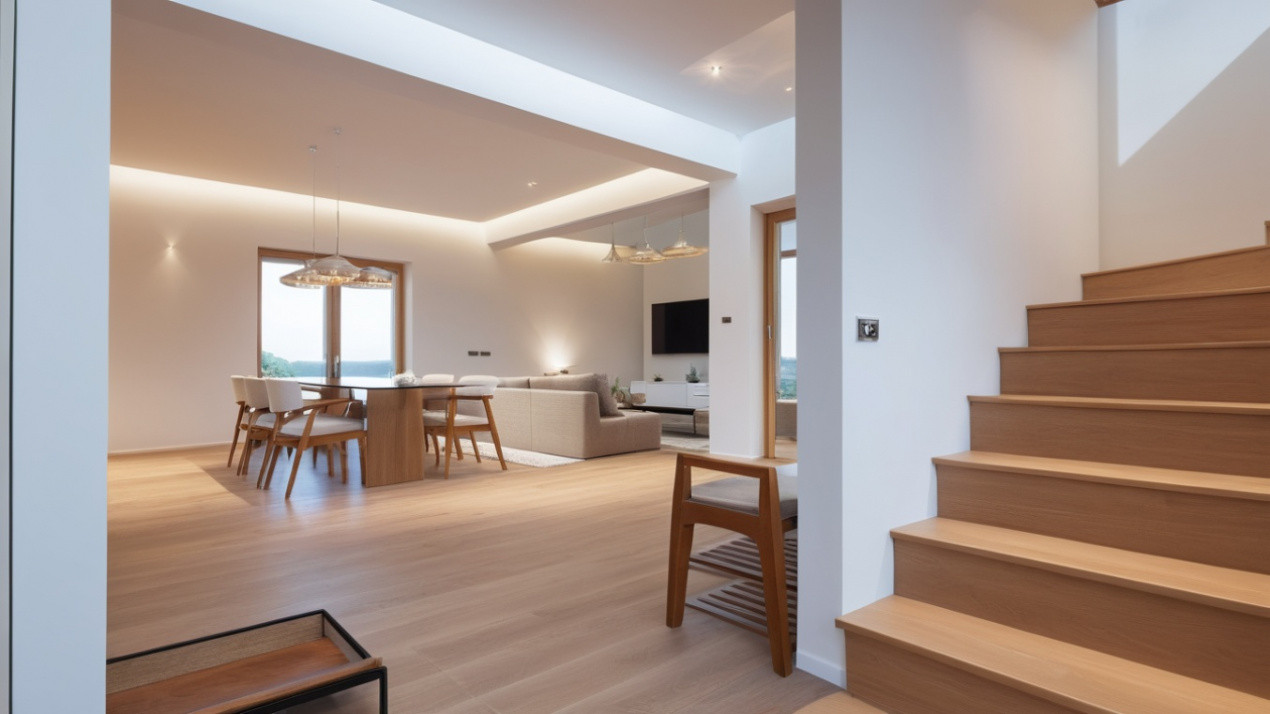 Proprietatea dispune de o suprafață utilă totală de 203 mp, care include 38 mp de terase cu vedere către lac si un teren de 500mp. Finisajele interioare nu sunt incluse în preț, oferind viitorului cumpărător posibilitatea de a personaliza spațiul conform propriilor preferințe. Prețul de achiziție include două locuri de parcare situate în garaj.